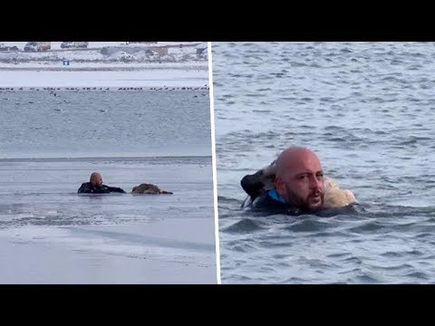 Puppy rescued from frozen lake in Turkey after getting stuck in ice